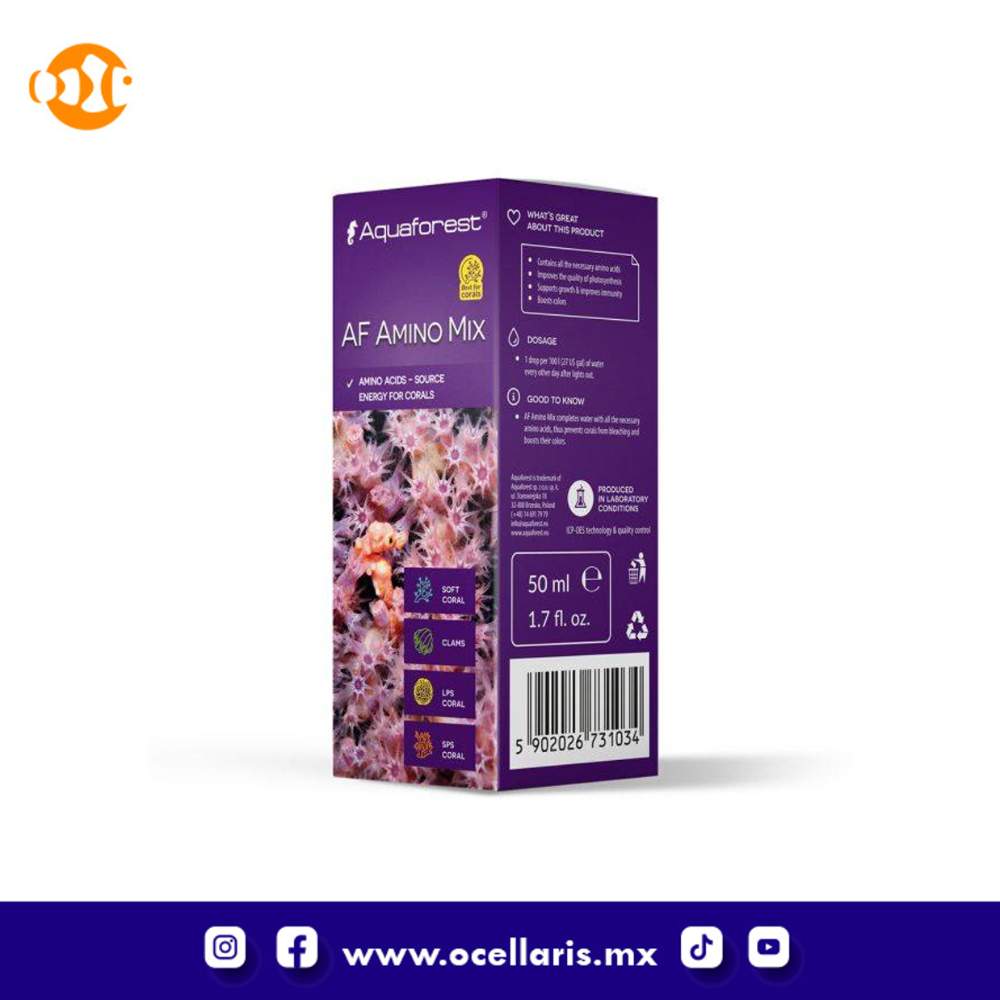 no solo potencia la coloración, sino que también mejora la calidad de la fotosíntesis. Como resultado, los corales obtienen más energía de la luz, se mantienen en perfectas condiciones y crecen más rápido. El uso regular de AF Amino Mix mejora la inmunidad y acelera notablemente el crecimiento de los corales.