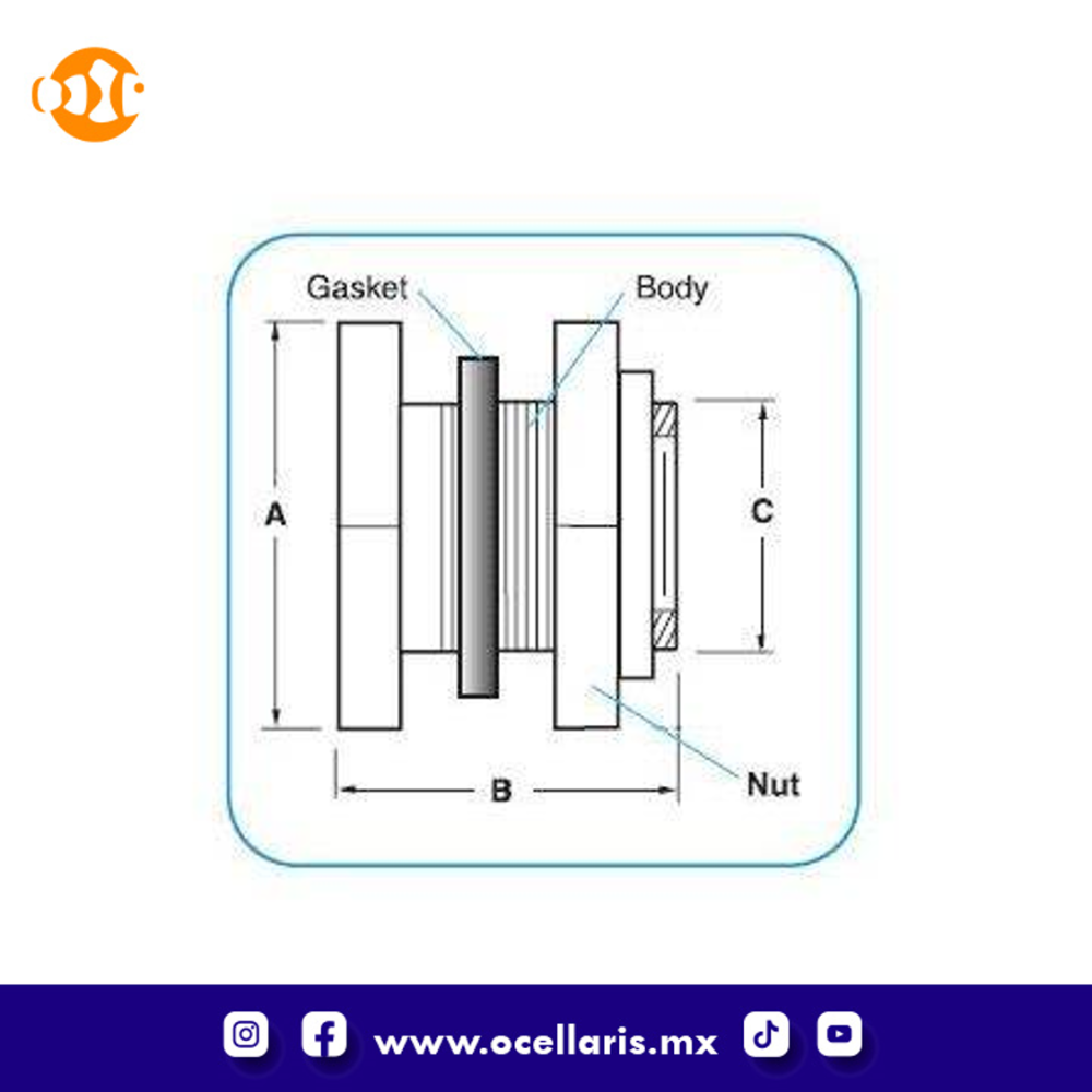 Al medir bulkhead, necesitará un orificio en su tanque que sea un poco más grande que la medida "C" para el mamparo correspondiente, pero no más grande que la medida "A". (ver imagen)