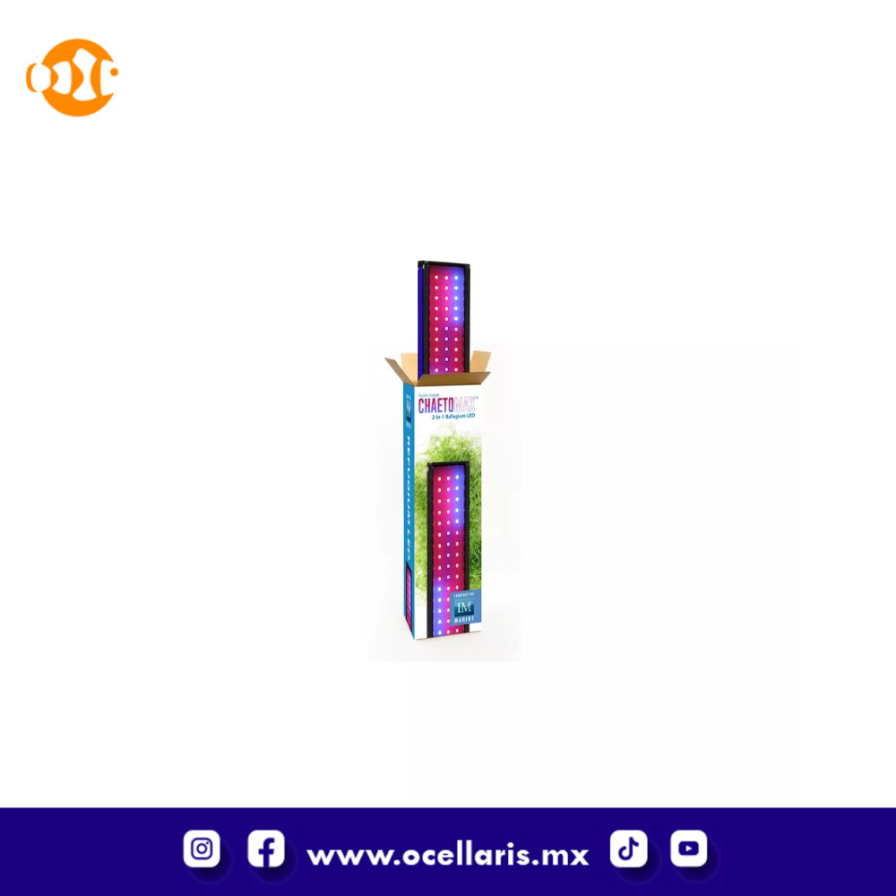 ChaetoMax 2-n-1 Refugium LED de Innovative Marine fue diseñado para sumps y tanques AIO que utilizan un refugio. Con múltiples opciones de montaje y 45 LED cuidadosamente seleccionados, el ChaetoMax ayudará a aumentar el crecimiento y el rendimiento de las algas.