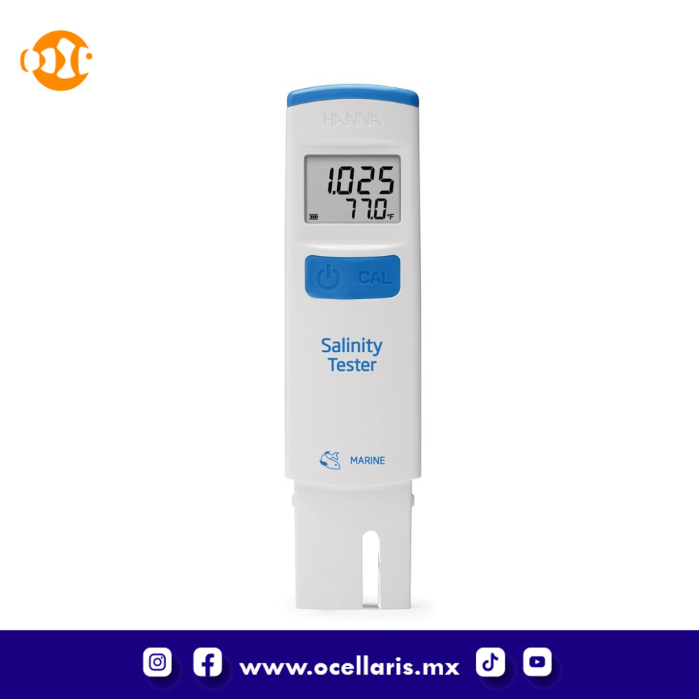 - Muestra los resultados en partes por mil (ppt), Unidades Prácticas de Salinidad (PSU) o Gravedad Específica (S.G.).