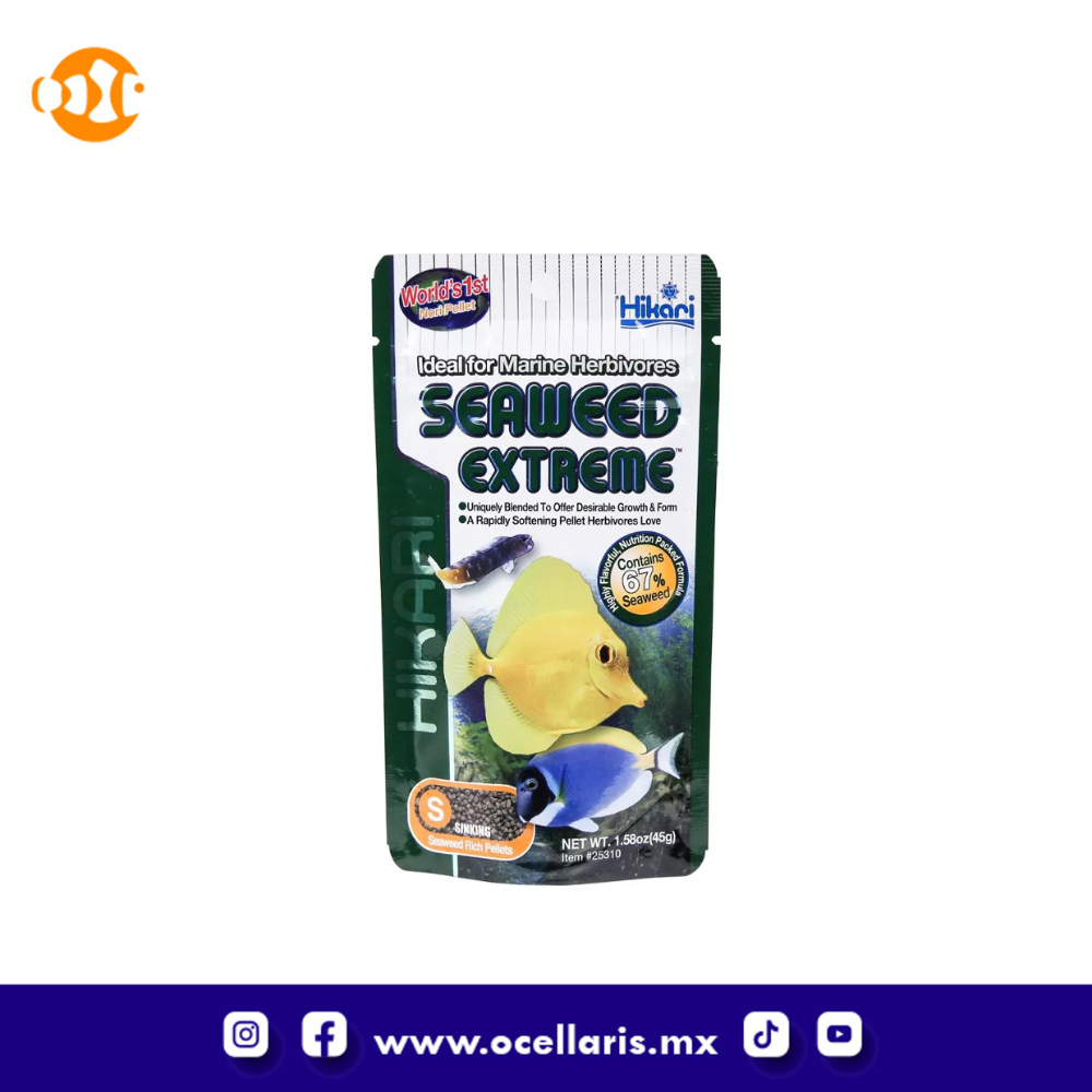 El primer pellet del mundo para peces marinos que ofrece una cantidad extrema de algas naturales. Con más de un 67% de algas, este pellet es devorado por cualquier herbívoro marino nada más con tocar el agua. Atrás quedaron los días de colgar tiras de algas marinas y el desorden que dejan en su tanque. Deje que Hikari ® lo ayude a brindarles a sus herbívoros y omnívoros marinos lo que necesitan con poca o ninguna complicación.