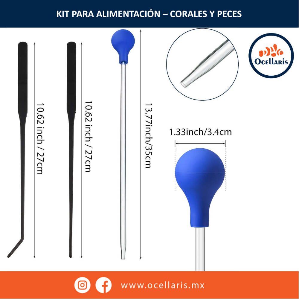 utiliza las pinzas para alimentar corales y peces o para mantenimiento del acuario y la pipeta para alimentar fitoplancton líquido a corales u otros animales acuáticos, se puede aplicar a tanques de coral marino para alimentar coral, arrecifes de coral, anémonas, peces león, camarones abundantes, gobios, etc.
