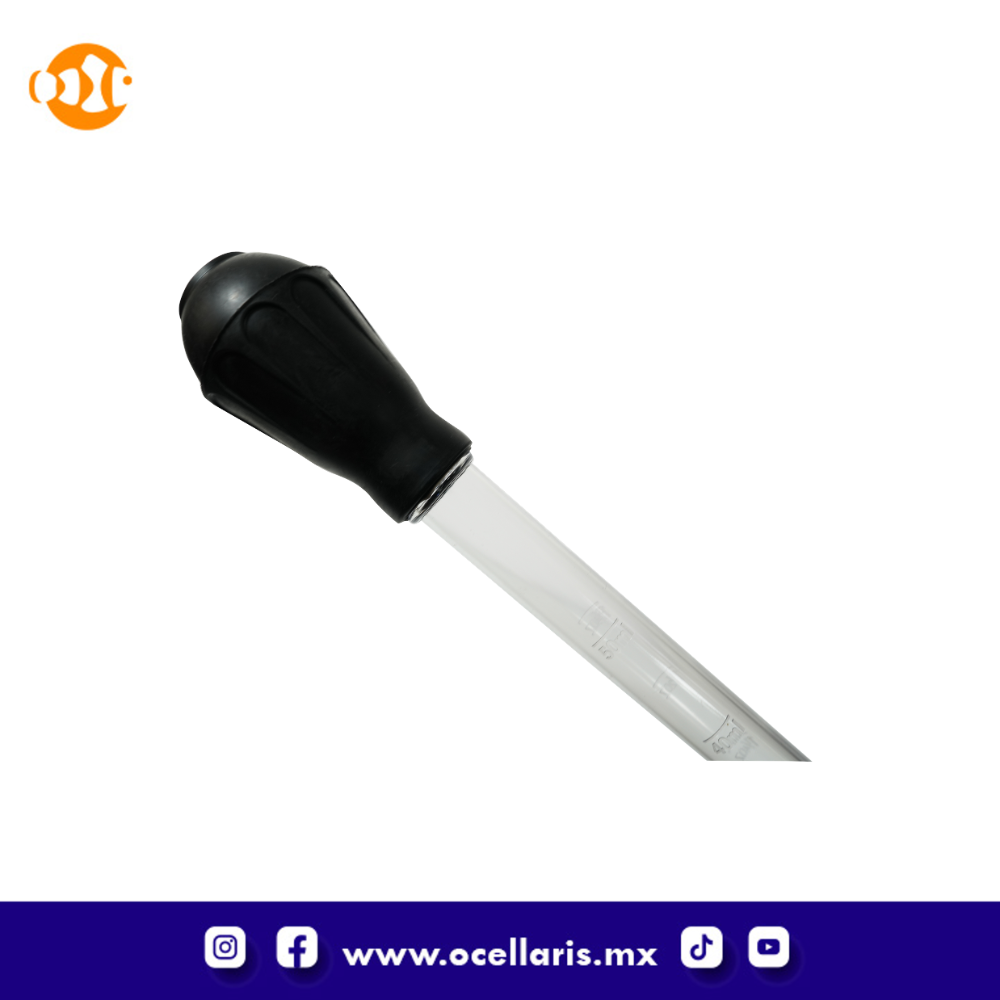 Además, el tubo está echo de un material altamente resistente, lo que lo convierte en una alternativa segura y duradera en comparación con las pipetas tradicionales de vidrio que se rompen con facilidad.