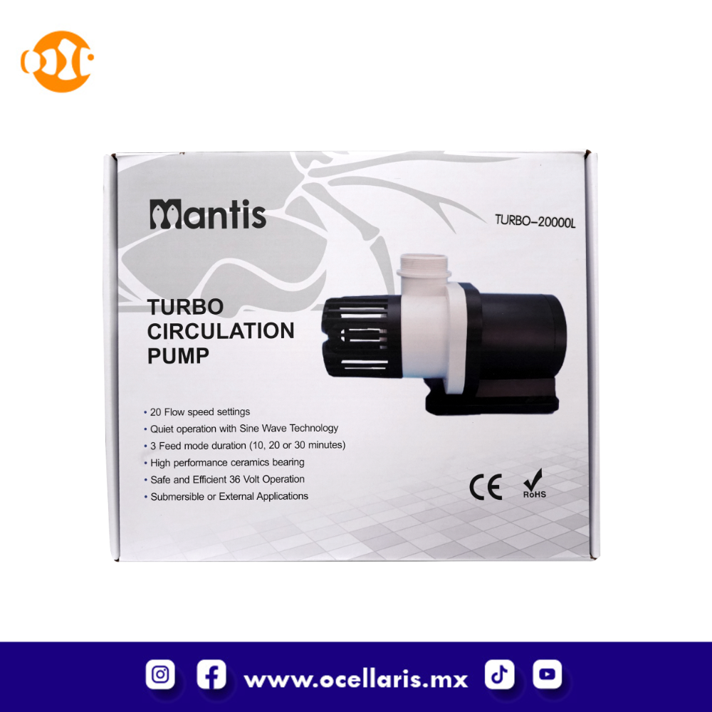 ha sido diseñada con los más altos estándares de calidad y durabilidad. Su funcionamiento silencioso y eficiente la convierte en una opción ideal para acuarios de gran tamaño. La bomba de retorno Mantis TURBO 20000 se destaca por su facilidad de instalación y mantenimiento. Su diseño compacto y ergonómico permite una colocación sencilla y discreta dentro de tu acuario. No importa si eres un aficionado o un experto en acuarios, la bomba de retorno Mantis TURBO 20000 es una opción confiable para mejorar la calidad de tu acuario. Asegúrate de proporcionar a tus peces y corales un entorno saludable y óptimo con esta bomba de retorno de alto rendimiento.