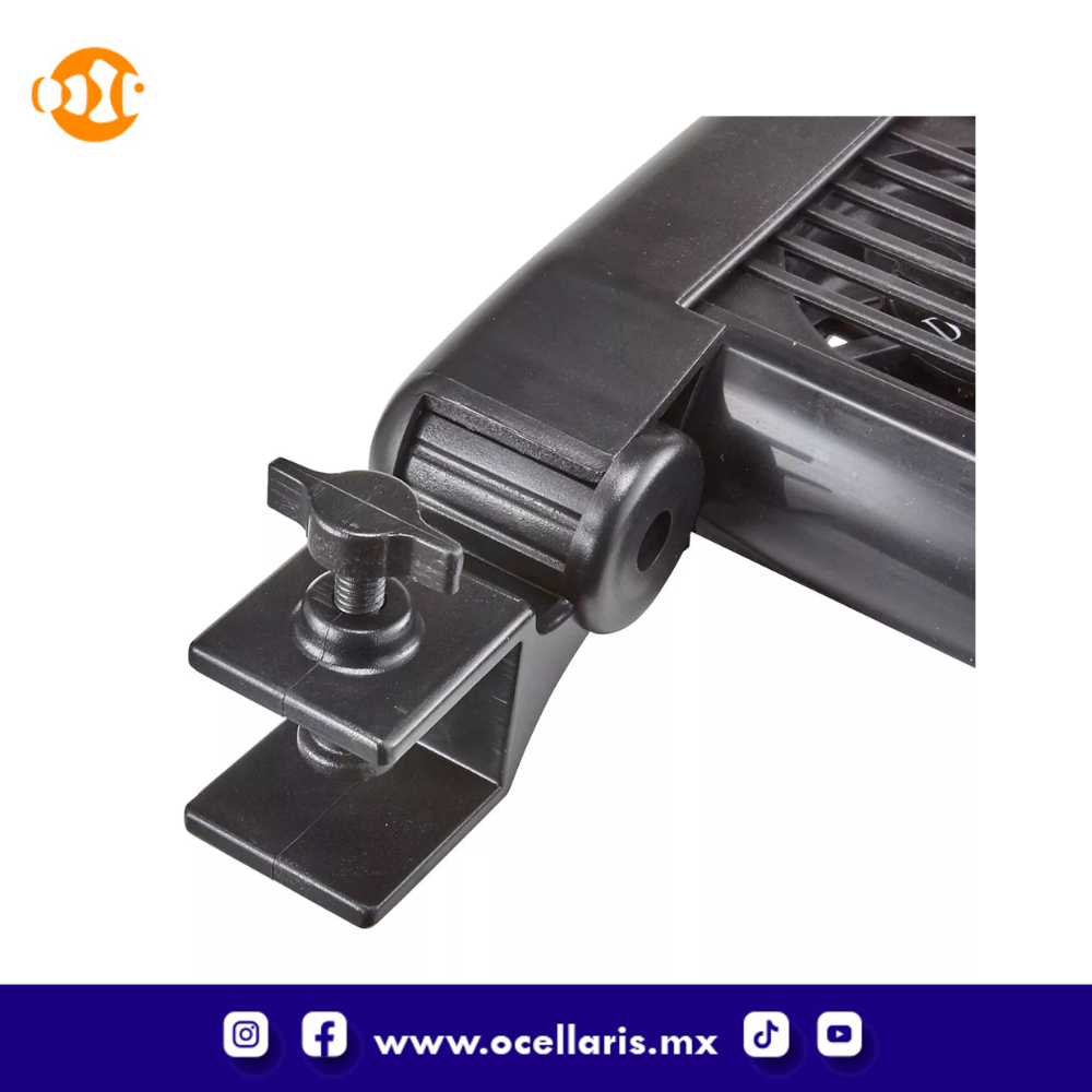 del enfriador de acuario viene con un soporte de montaje ajustable con bisagras que permite colocar el ventilador para soplar aire donde lo necesite.
